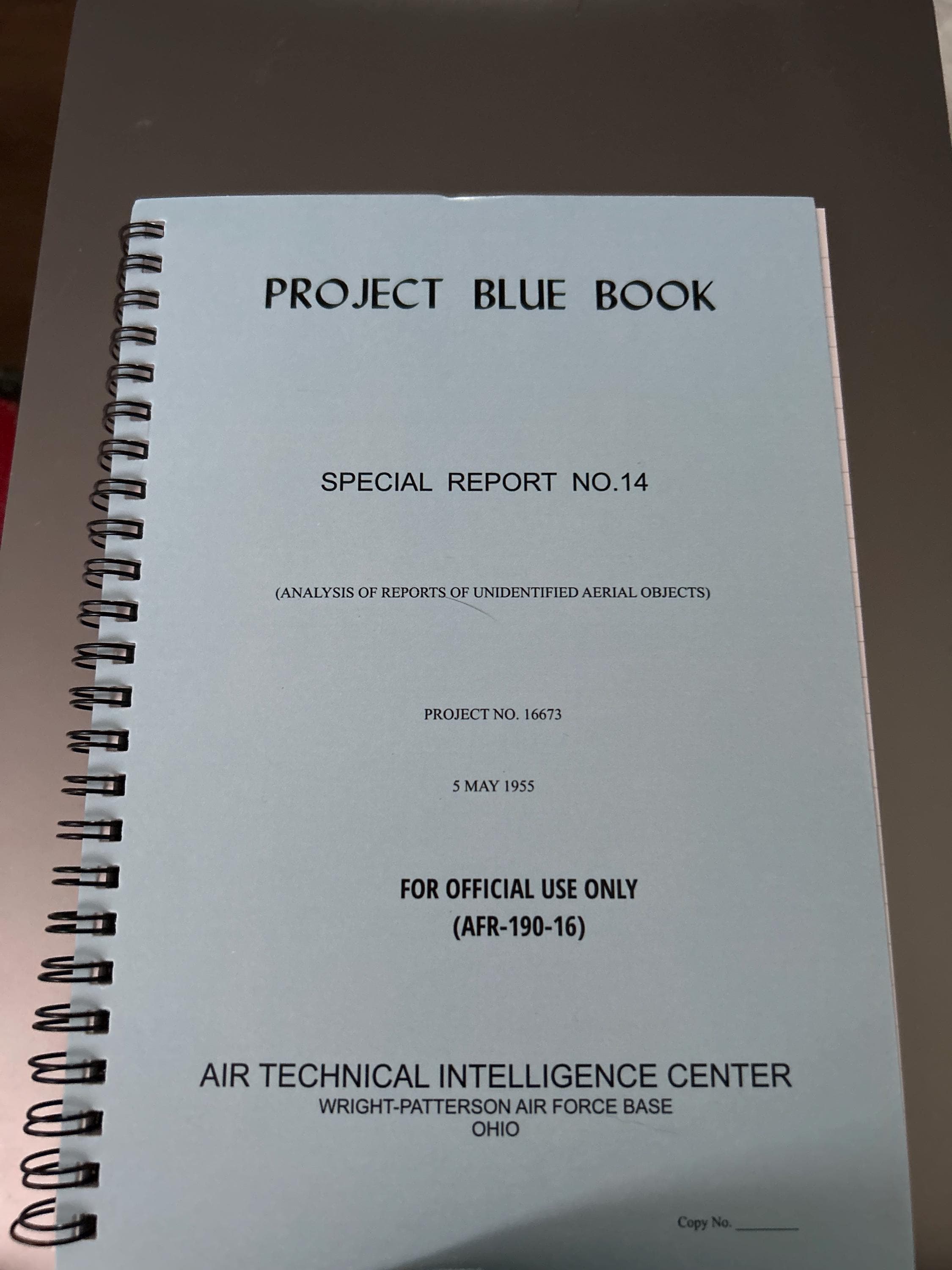 Design is from an official Project Blue Book report from 1955. The copy number, in the lower right corner, has been left blank, so that it can be added in with permanent marker by the owner.